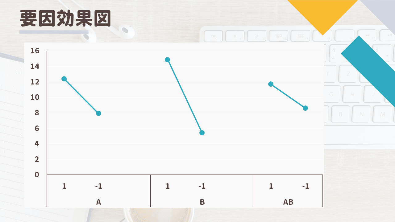 交互作用ABの傾きは因子Aと因子Bの主効果に対して小さいため